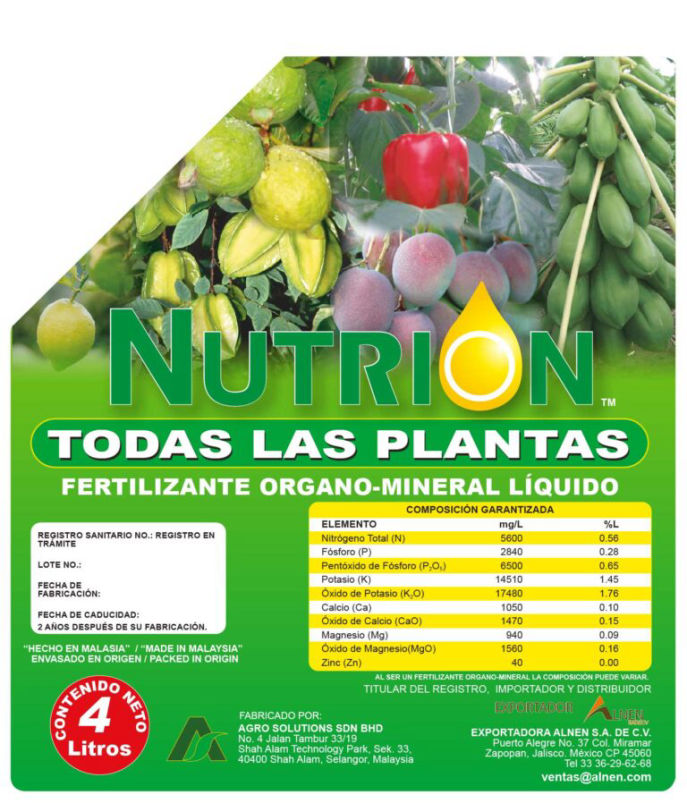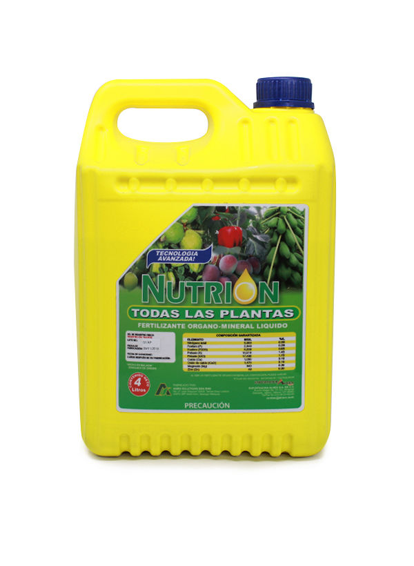 NUTRION TODAS LAS PLANTAS es un nutriente foliar en suspensión hecho a partir de una fórmula que incluye extractos de algas marinas y componentes minerales con buena asimilación en las plantas.